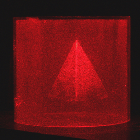 Holograma Cilíndrico iluminado con luz láser. Tamaño 12 x 10 cm.